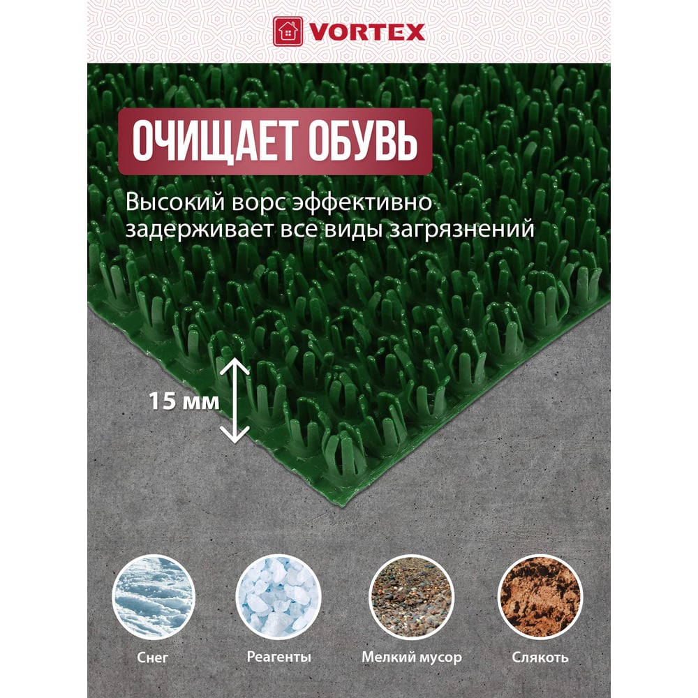 Коврик-дорожка VORTEX 0,90х15 м ТРАВКА на противоскользящей основе темно-зеленый 24006