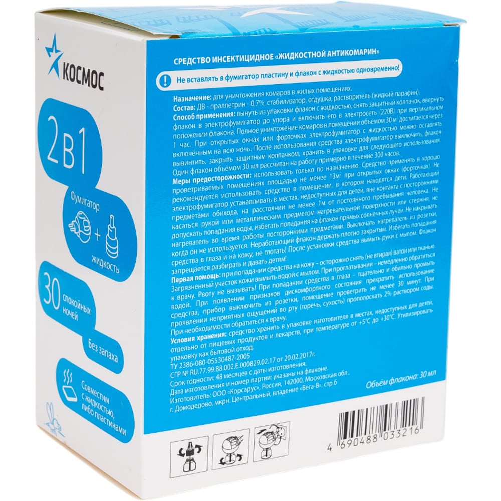 Комплект от комаров: электрофумигатор + жидкость Космос KOC_GH326