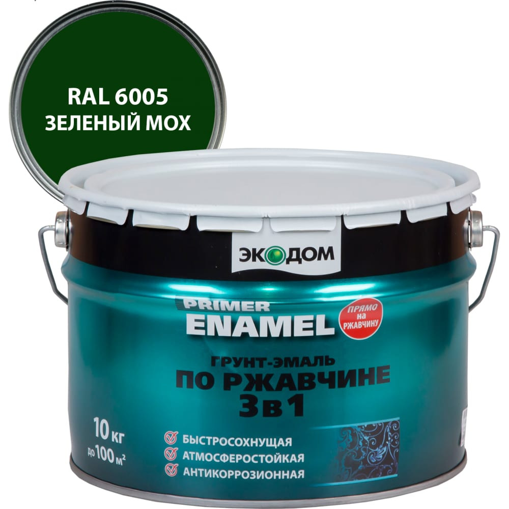 Грунт-эмаль по ржавчине Экодом 3 в 1, зеленый мох 10 кг 1 206037