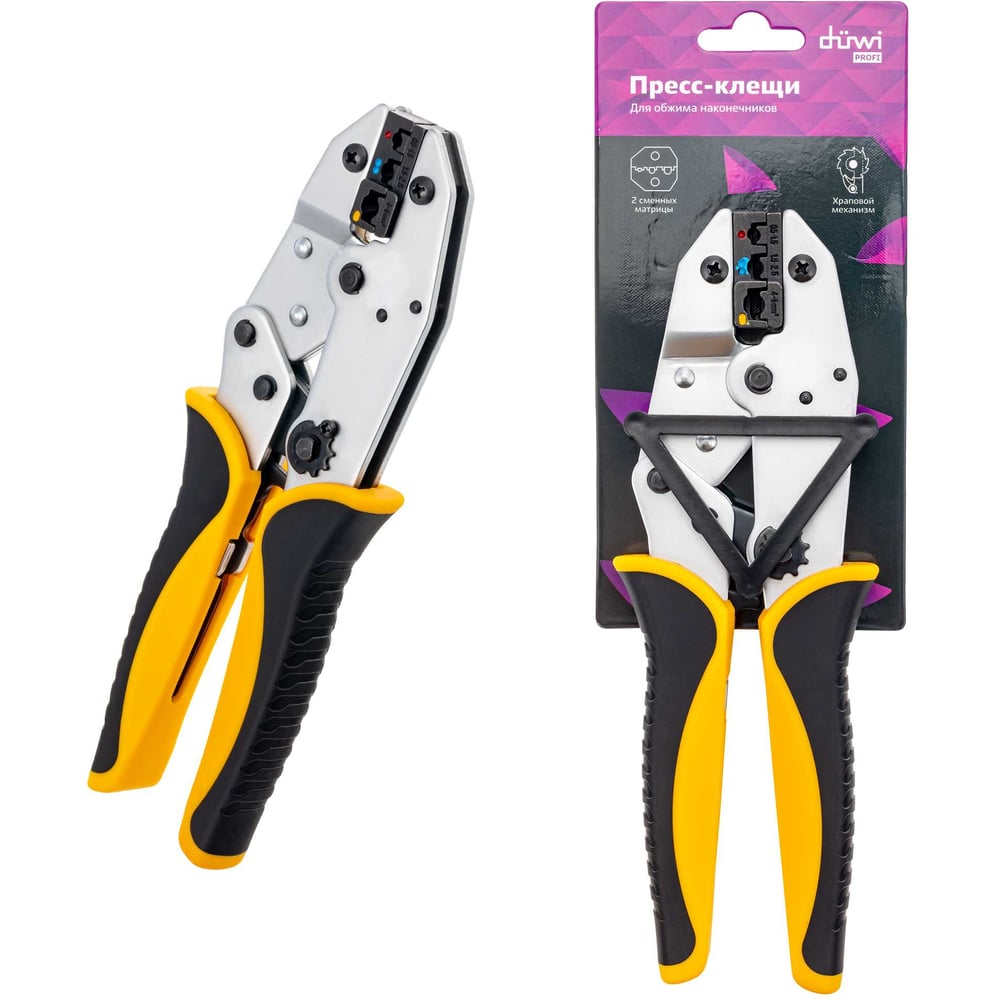 Пресс-клещи для обжима наконечников duwi PROFI 0.5-6мм², 2 сменные матрицы 26121 6
