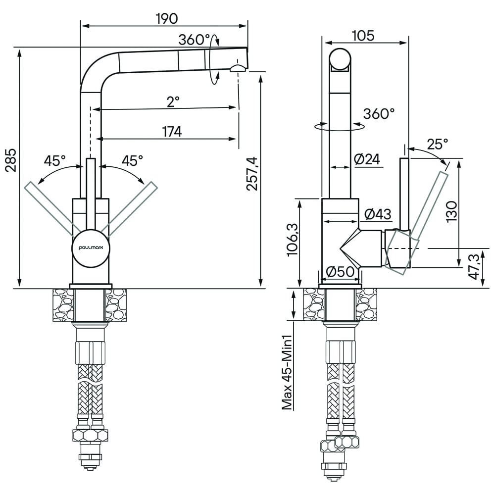 | Высота излива | 257.4 мм |