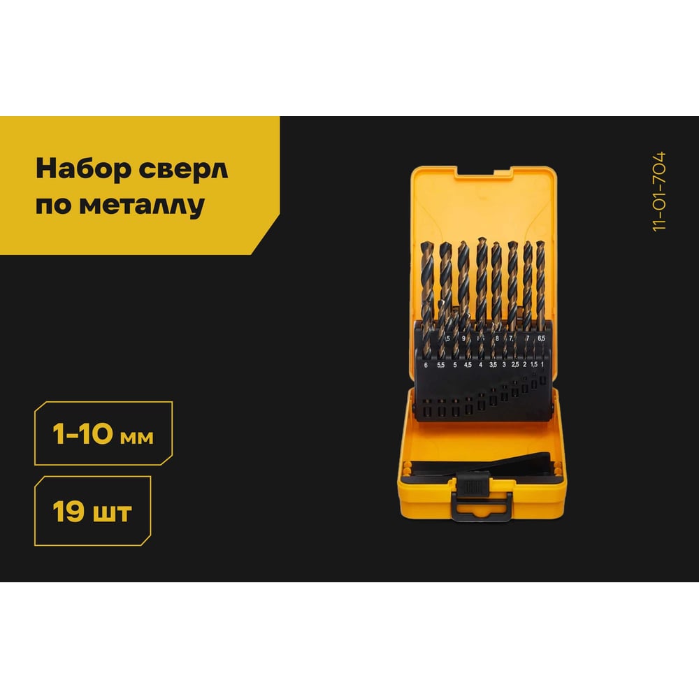 Набор сверл по металлу 19 предметов, 1-10 мм, HSS-G Inforce 11-01-704