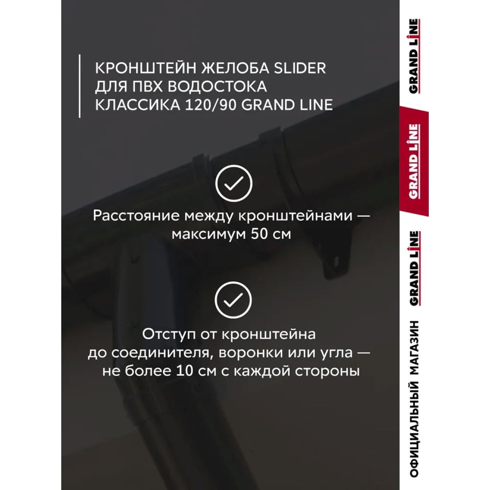 Кронштейн желоба GrandLine Grand Line slider ПВХ, шоколадный RAL 8017 179779