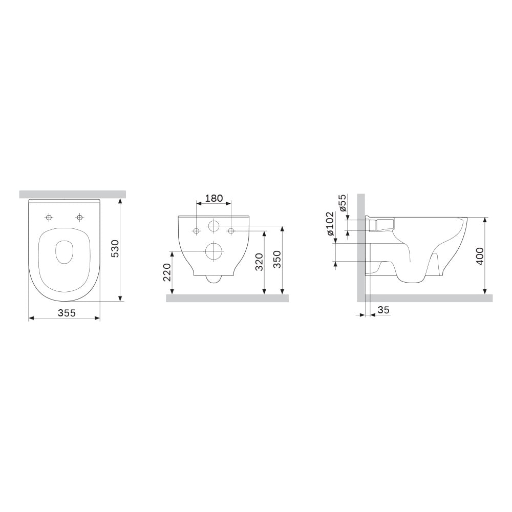 Цвет белый Тип подвесной унитаз Стиль современный Серия Like Цвет фурнитуры хром Угловая конструкция нет Высота унитаза 350 мм Ширина унитаза 355 мм Материал унитаза санфарфор Монтаж настенный Цвет сиденья белый Сиденье в комплекте да Подогрев сиденья нет Система антивсплеск да Функция биде нет Тип выпуска горизонтальный Механизм слива воды определяется системой инсталляции Безободковый да Наличие микролифта есть Режим слива воды определяется системой инсталляции Материал сиденья дюропласт Для детей нет Для людей с ограниченными возможностями нет Высота чаши унитаза 360 мм Организация слива каскадный слив Подвод воды определяется системой инсталляции Быстросъемное сиденье да Форма чаши овальная Расстояние между креплениями к стене 180 мм Глубина унитаза 530 мм Импульсный смыв нет