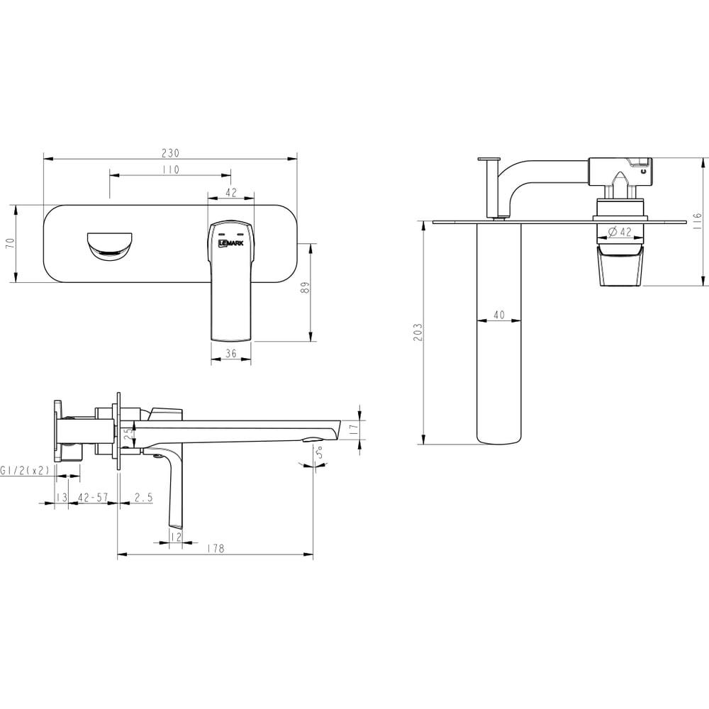 Смеситель для раковины Lemark Ursus встраиваемый LM7226BL