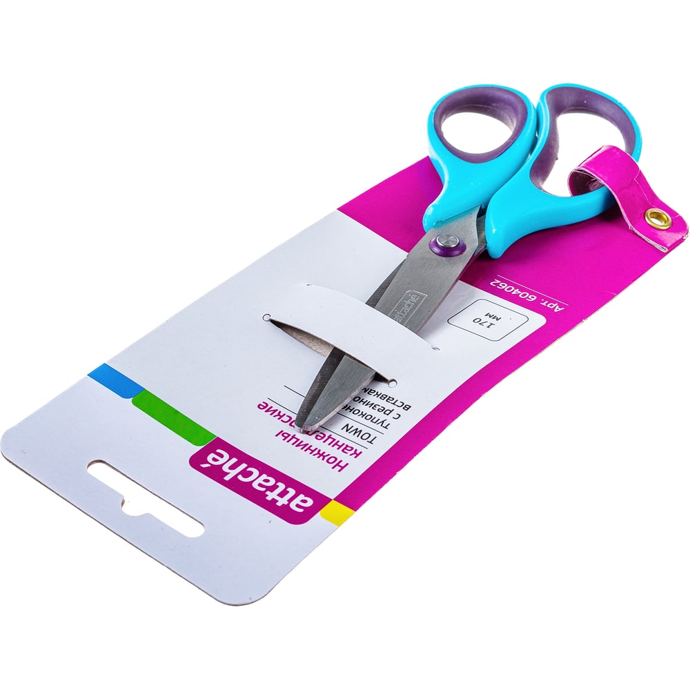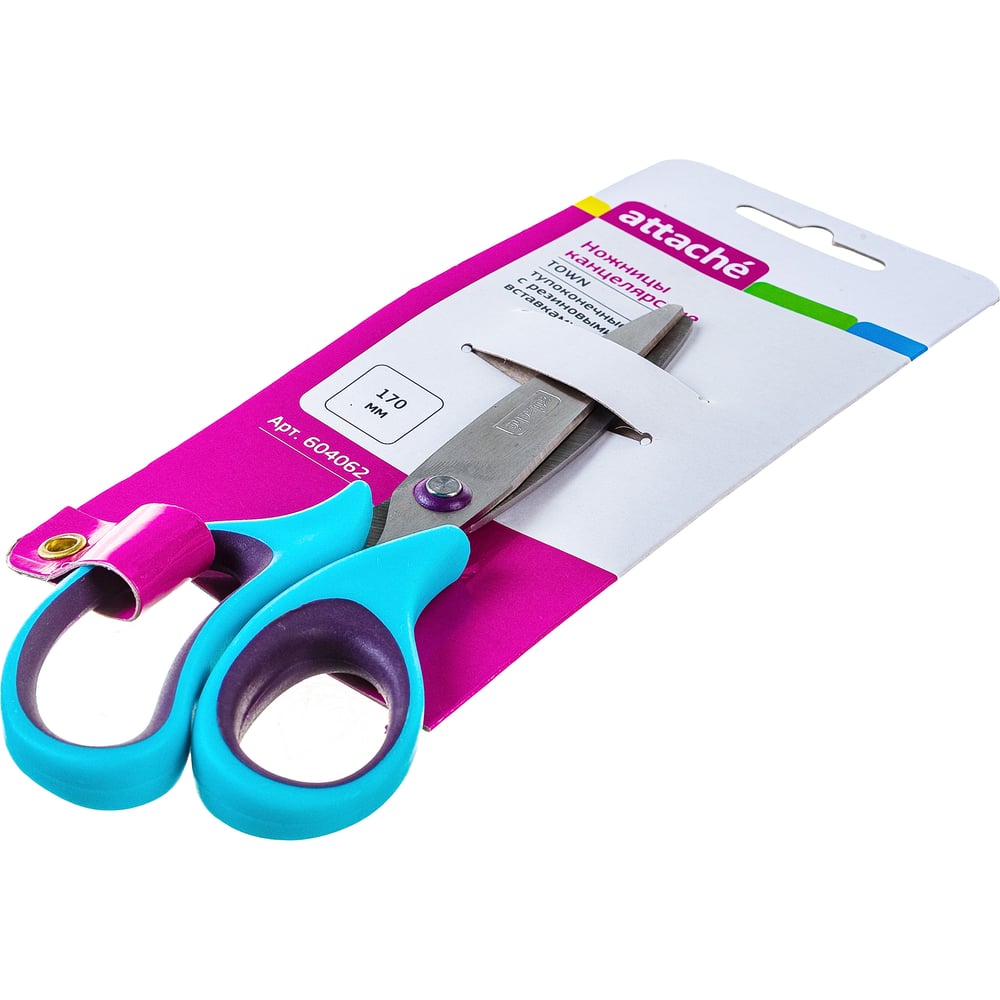 Тупоконечные ножницы Attache Town 170 мм, эргономичные ручки без покрытия, цвет фиолетовый/голубой 604062