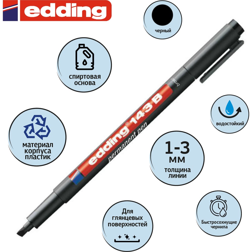 Перманентный маркер для глянцевых поверхностей Edding E-143/1 B черный, 1-3 мм 537634