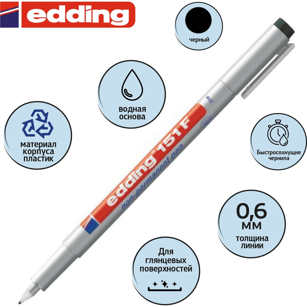 Стираемый маркер для глянцевых поверхностей Edding E-151/1 F черный, 0.6 мм 537640