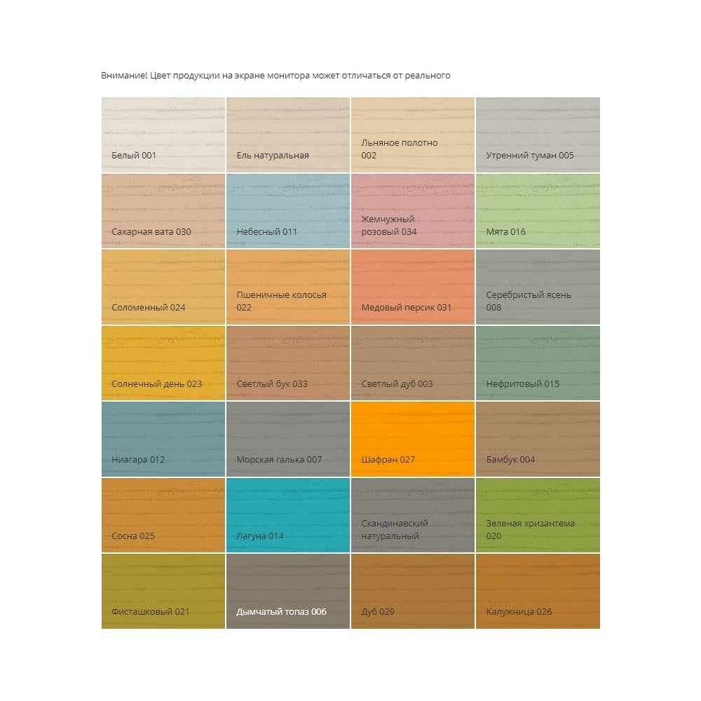 | Состав | Сополимер акриловый, алкидная эмульсия, УФ-фильтр, УФ-абсорбер, воск, добавки против плесени |