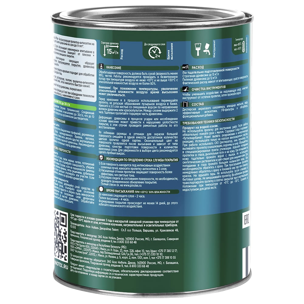 | Состав | Сополимер акриловый, алкидная эмульсия, УФ-фильтр, УФ-абсорбер, воск, добавки против плесени |