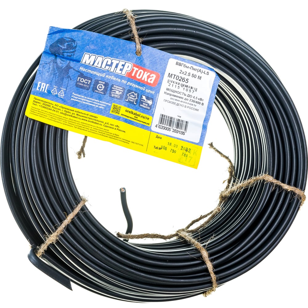 Кабель Мастер Тока ВВГбм-ПнгA-LS, 2x2.5, черный, 50м МТ0265