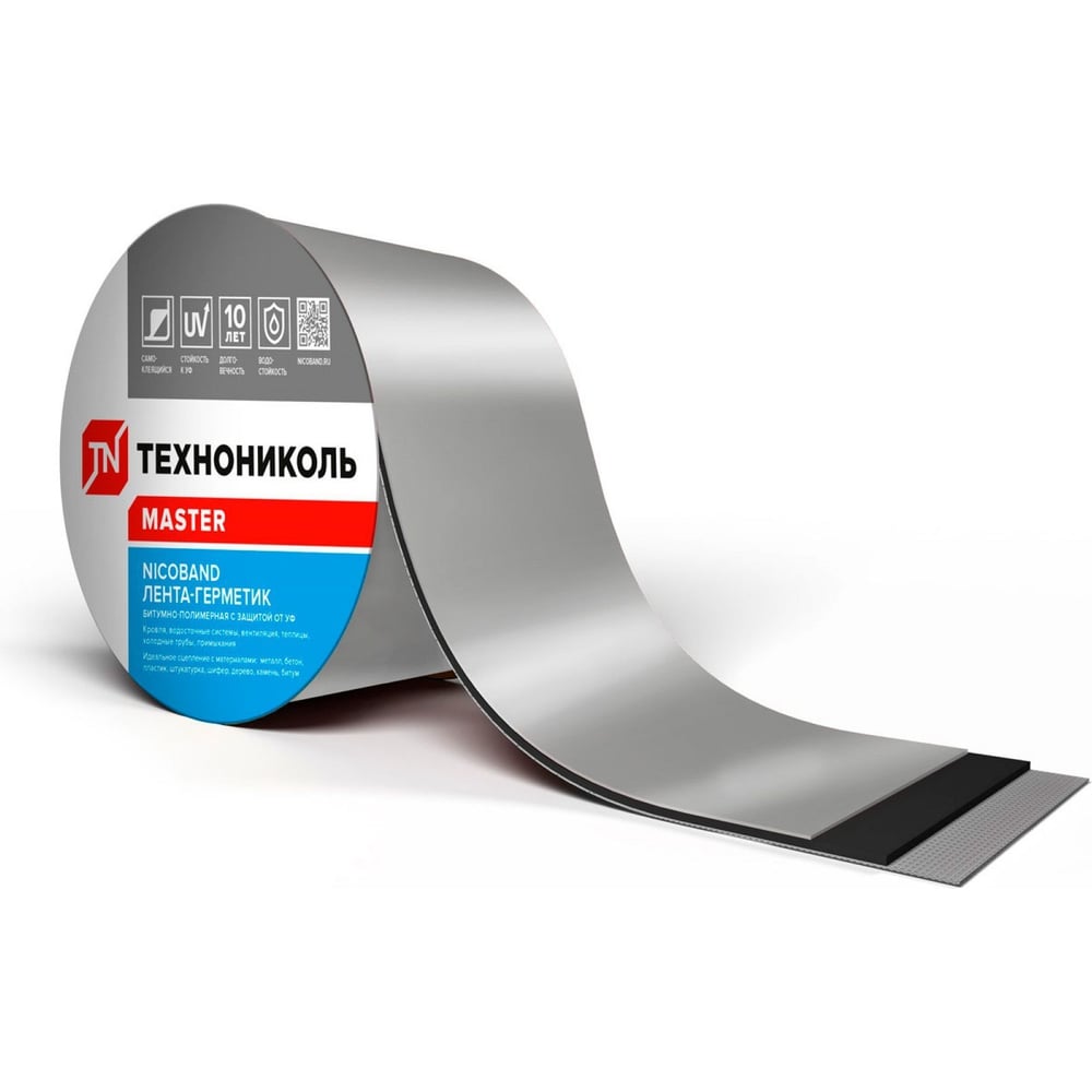 Лента гидроизоляционная Nicoband ГП (10 м х 10 см; серебристый) Технониколь ЦБ770894