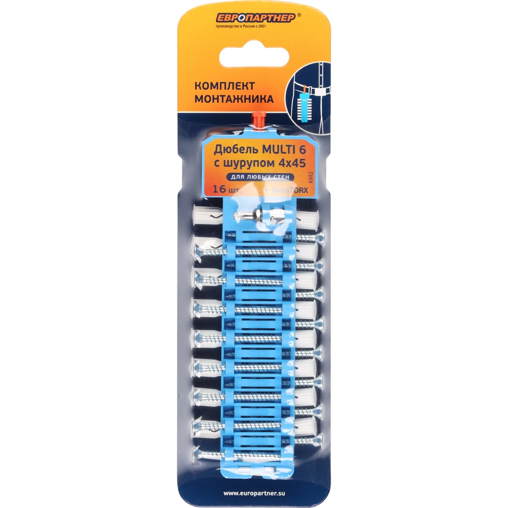 Набор дюбель ЕВРОПАРТНЕР Multi 6 шуруп 4х45 16 шт. KM2 0188