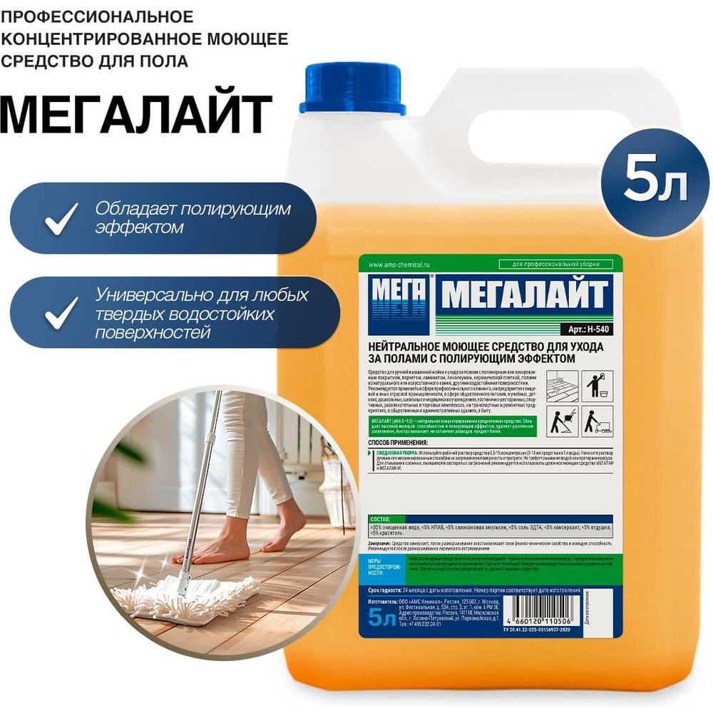 Нейтральное моющее средство для ухода за полами Мега МЕГАЛАЙТ Н 540