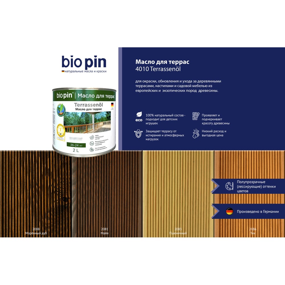 Масло для террас BIO PIN 4010 Terrassenol в цвете Пшеничный (2083) 2 л 40105C101