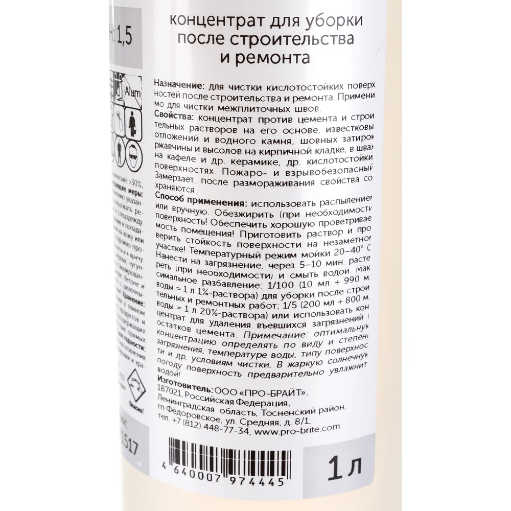 Концентрат для уборки после строительства и ремонта PRO-BRITE ALFA-19 013-1