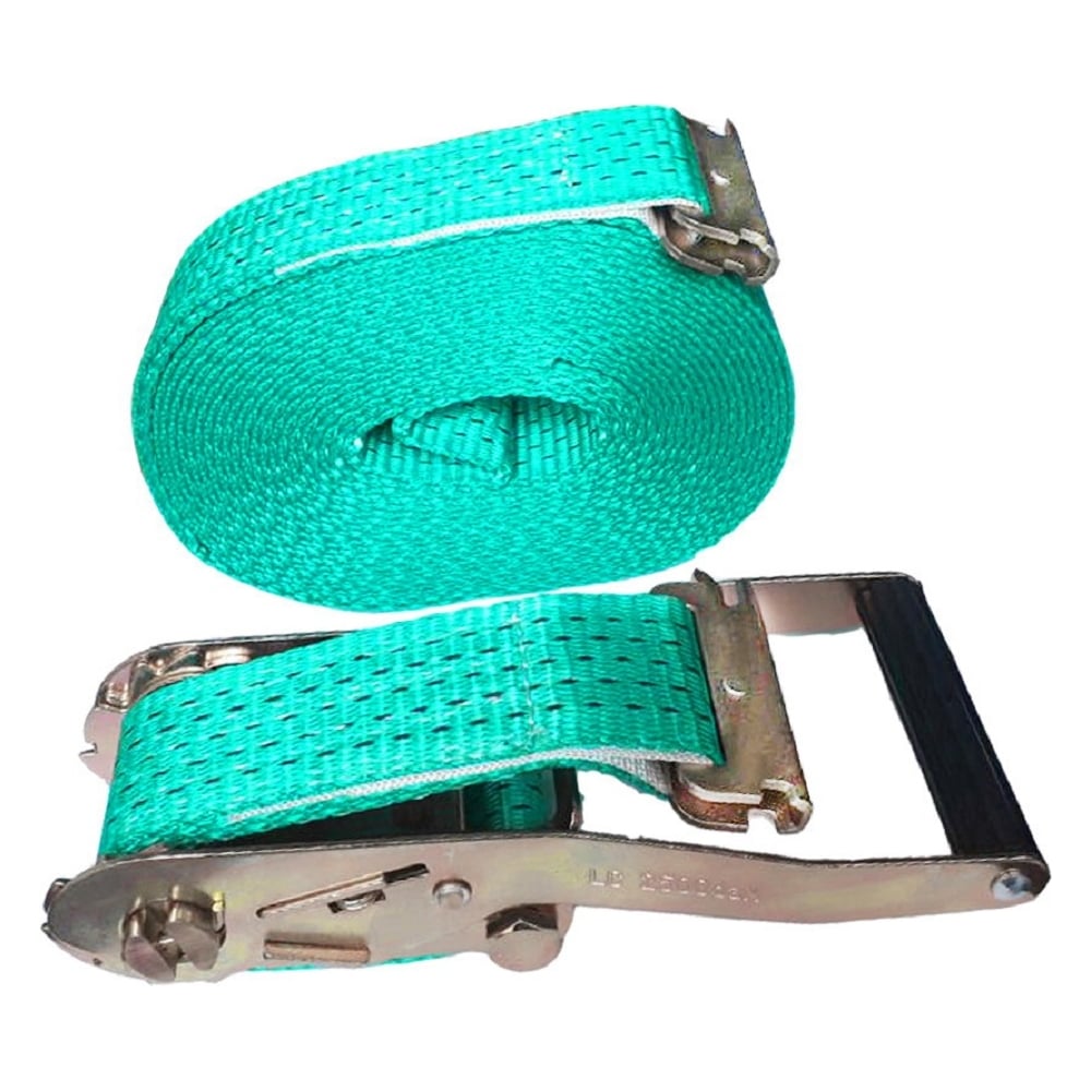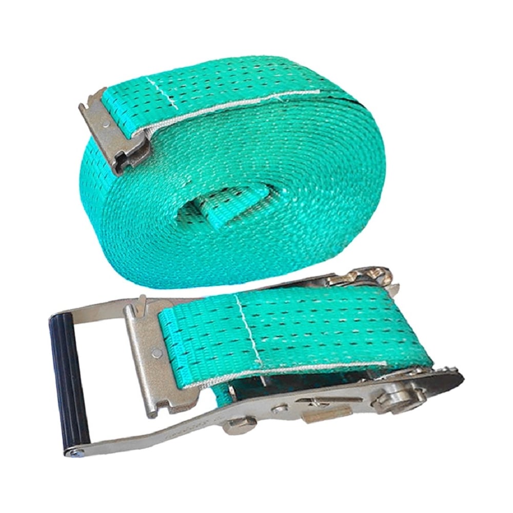 Стяжка для крепления груза Дали-Авто евроборт 5-10 тонн, зеленая лента с белой вставкой DA-01477