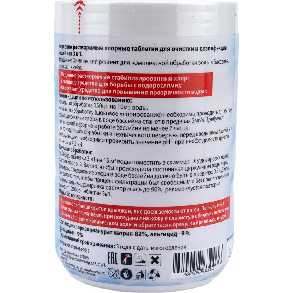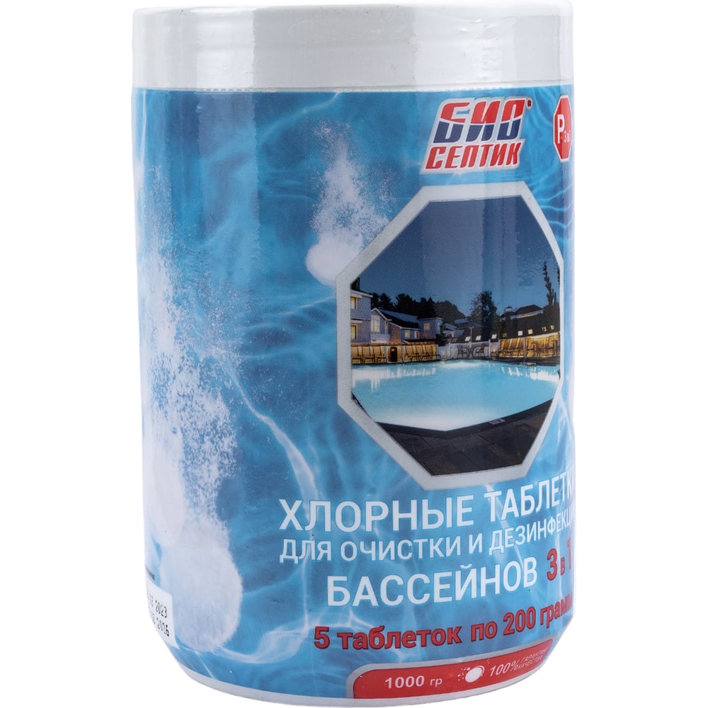 Медленно растворимые хлорные таблетки дочистки и дезинфекции бассейнов Биосептик 200 г х 5 шт P3в1