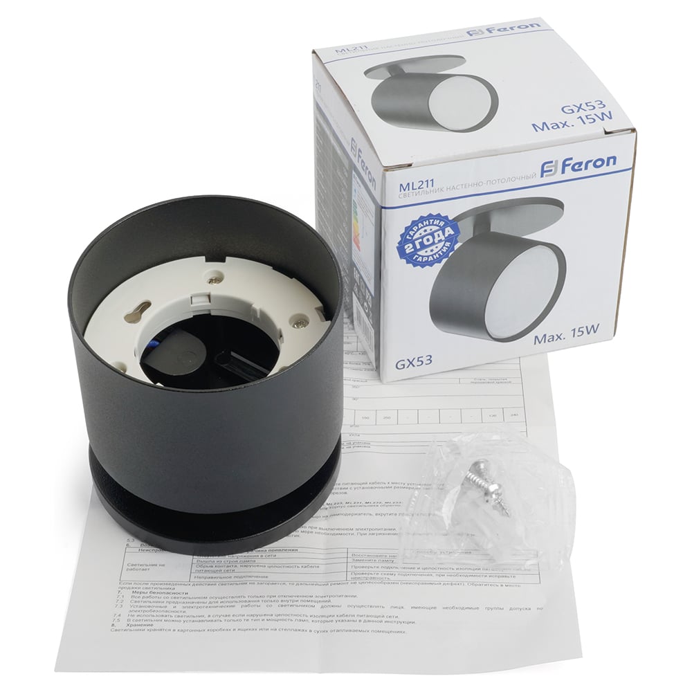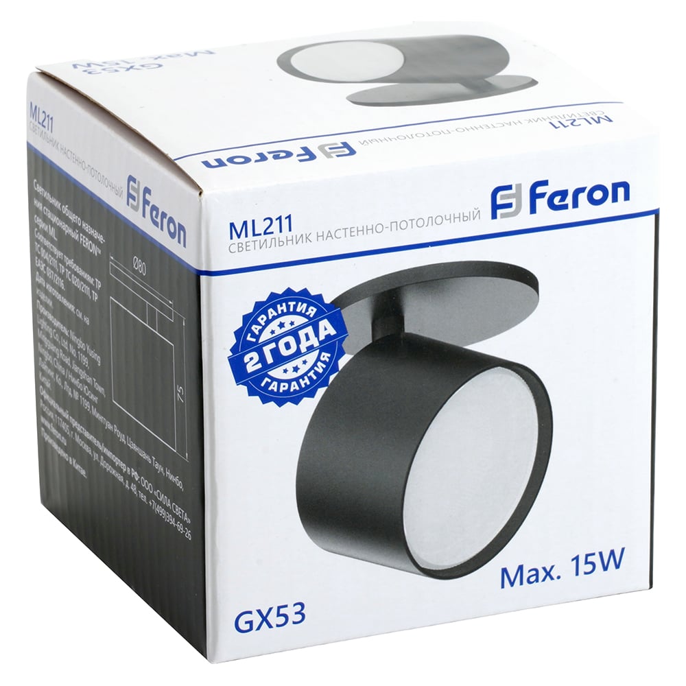 Светильник для натяжных потолков FERON ML211 настенно-потолочный под лампу GX53, черный 41475