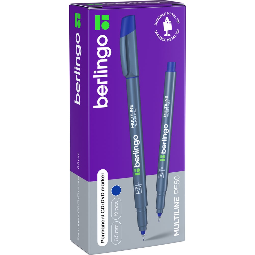 Маркер перманентный для CD/DVD Berlingo "Multiline PE50", синий, 0,5мм, 12 шт. PM6433