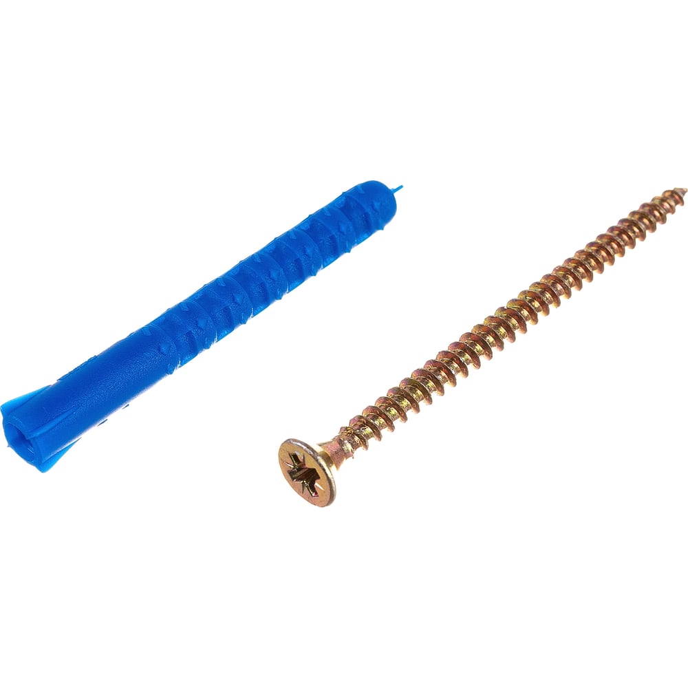 Набор для крепления ВИРТУОЗ дюбель 6x50 К, шуруп 4x60 потайная головка, желтый цинк, 100 шт. 550-00552