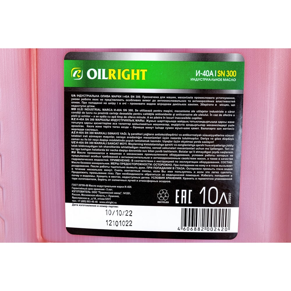 Веретенное масло OILRIGHT И-40 А 2595