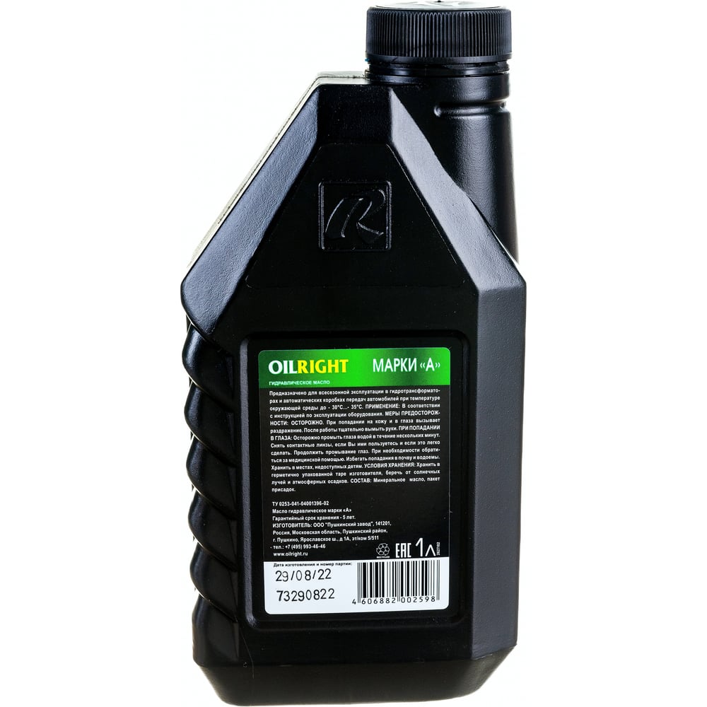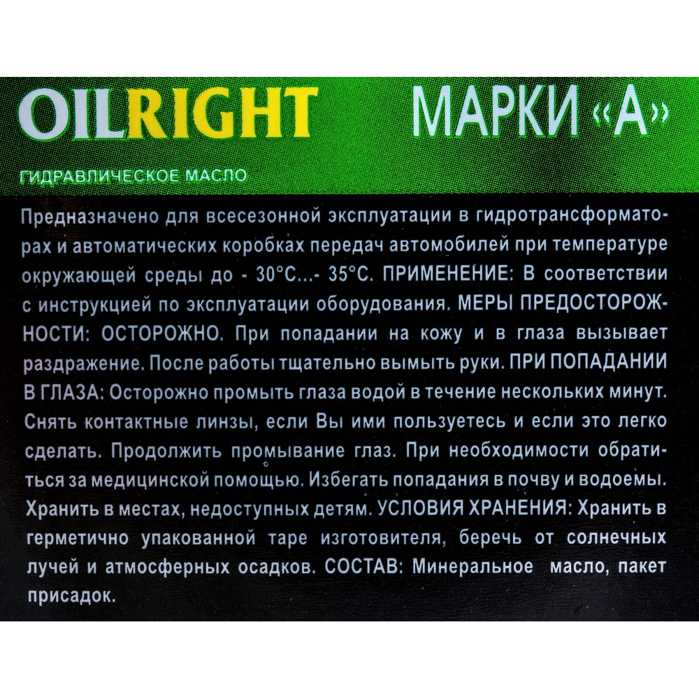 Масло гидравлическое марка А 1 л OILRIGHT 2627