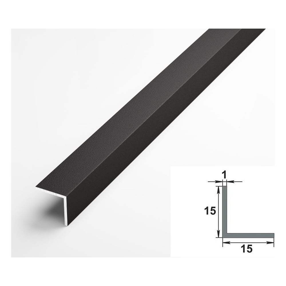 Декоративный угловой профиль ЛУКА алюминиевый 15х15 мм, 2.7 м, черный, 5 шт. уп. УТ000020752