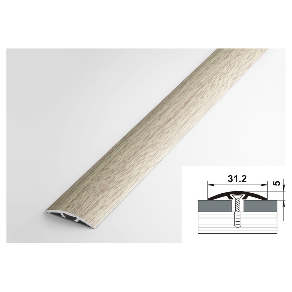 Порог прямой скрытый алюминиевый (31.2 мм; 0.9 м; декоративный; дуб беленый) Лука 00000002823