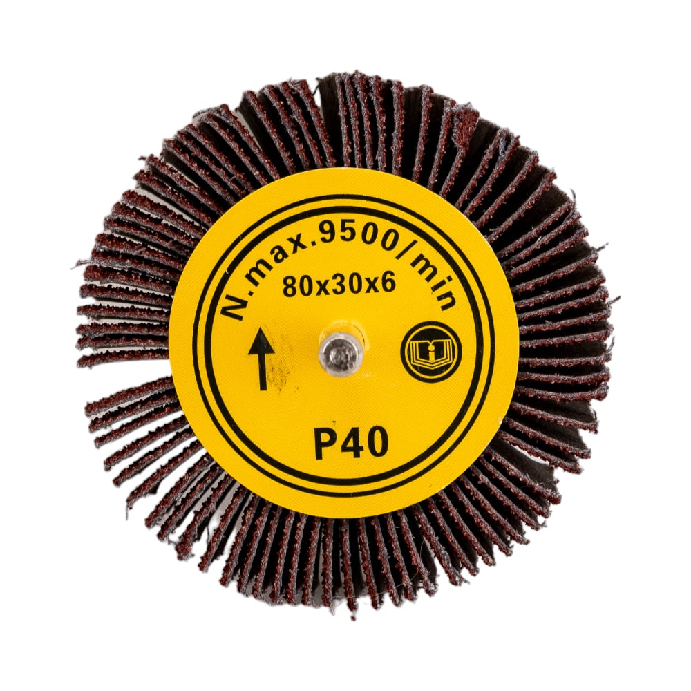 Головка-щётка лепестковая на шпильке (80x30x6 мм; Р40) Orientcraft OCFW80306040