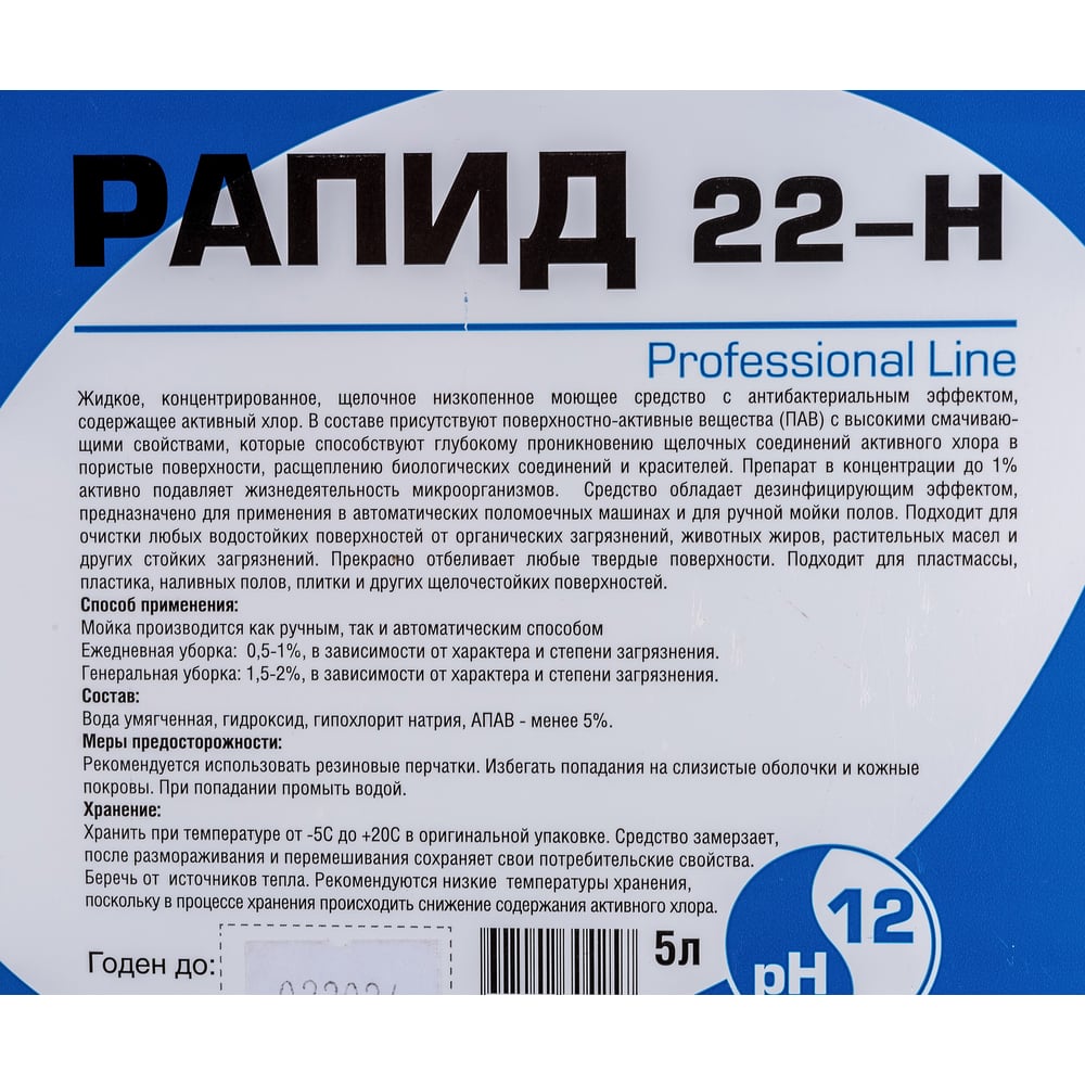 Низкопенное щелочное средство для мытья полов с активным хлором, Рапид 22-Н 5 л 4607002304257