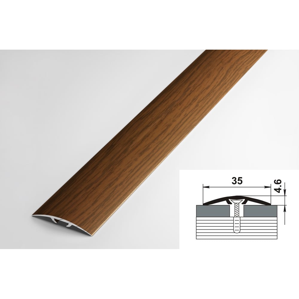 Порог прямой скрытый алюминиевый (35 мм; 0.9 м; декоративный; дуб темный) Лука 00000001547