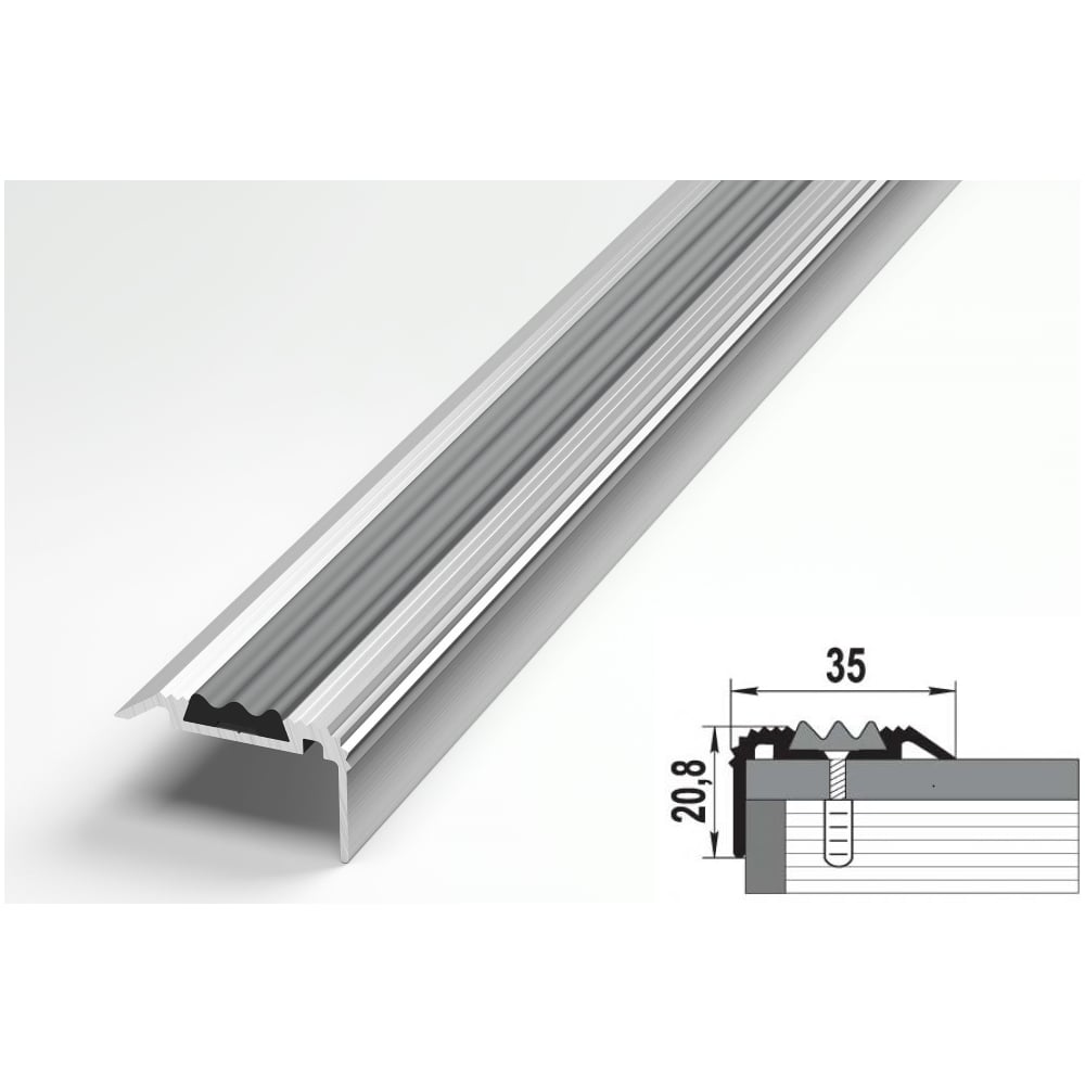 Порог угловой противоскользящий алюминиевый (35х20.8 мм; 0.9 м; без покрытия) Лука 00000001641