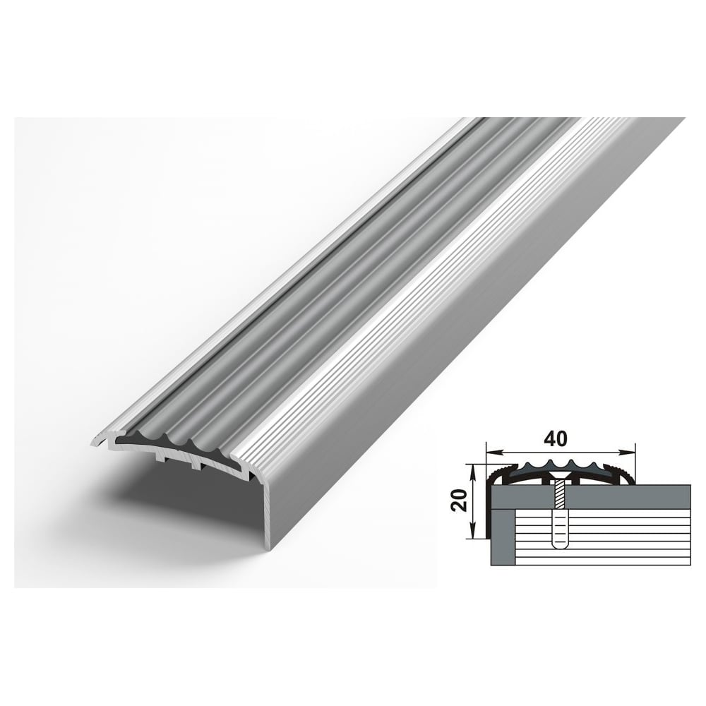 Напольный порог Лука 40х20мм с ПВХ вставкой 180 см (ПУ 71.1800.001) серая резинка УТ000023681