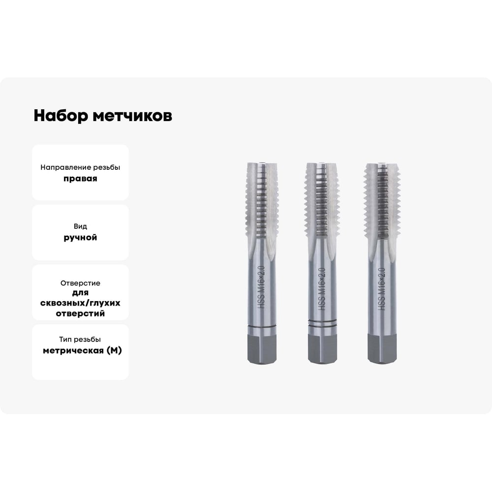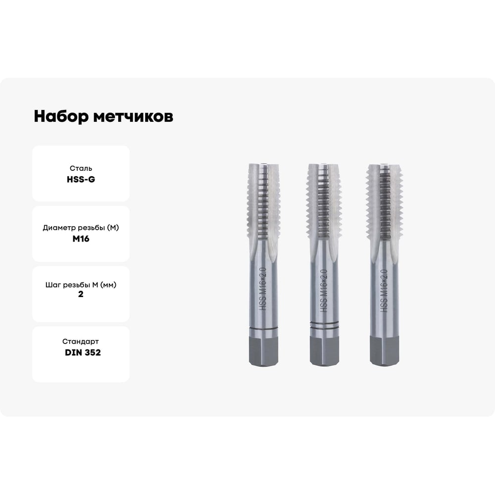 Набор метчиков Terrax by RUKO из 3-х шт. М 16 Шаг 2.0 мм HSS-G 230160TX
