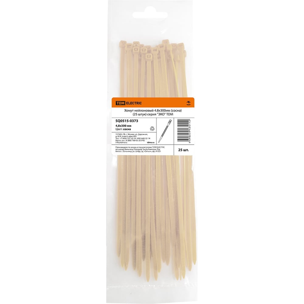 Нейлоновый хомут TDM ELECTRIC серия ЭКО 4.8х300 мм, сосна, 25 штук SQ0515-0373