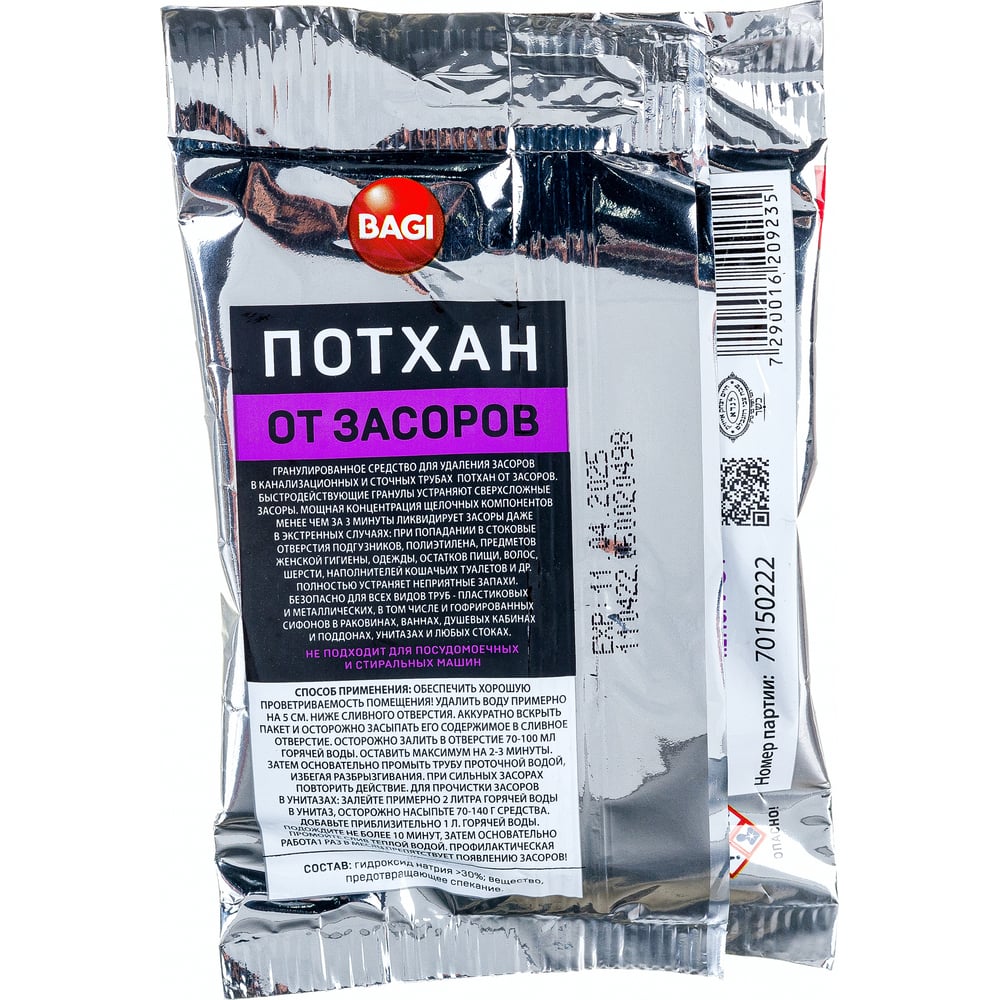 Гранулированное средство для удаления засоров в канализационных и сточных трубах Bagi Потхан 70 г 1015050033