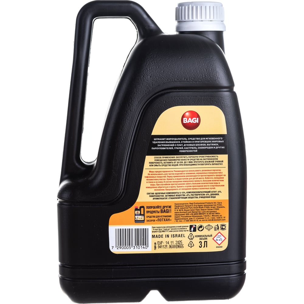 Концентрированный жироудалитель от стойких и пригоревших загрязнений с плит Bagi Шуманит 3 л 1015024164