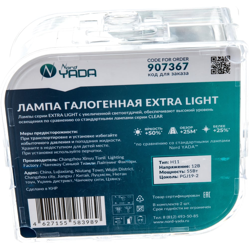 Лампа Nord-Yada H11 12V 55W EXTRA LIGHT +50 % Plastic case, 2шт 907367