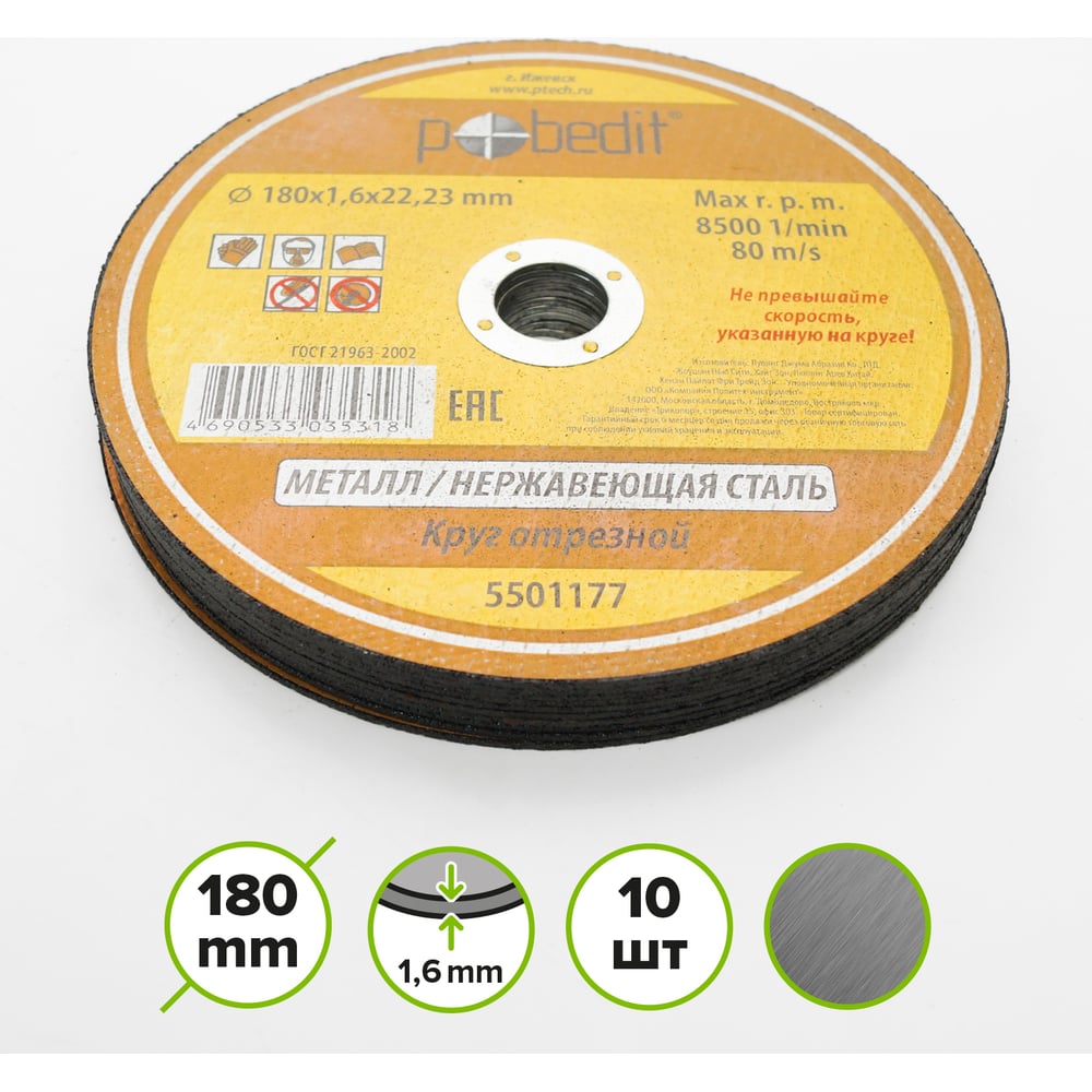 Круг отрезной по металлу 180х1.6х22.23 мм Pobedit 5501177