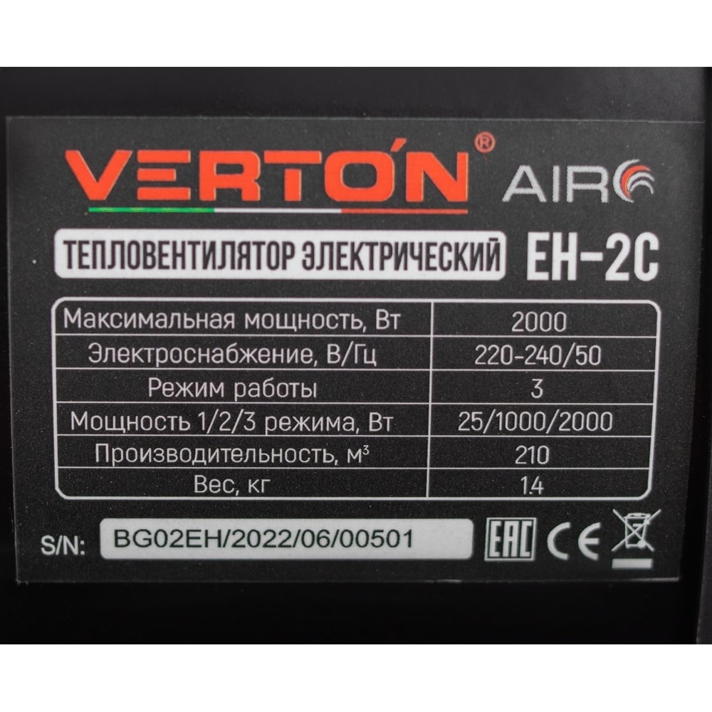 Электрический тепловентилятор VERTON Air EH-2C 220В, 01.5985.6761