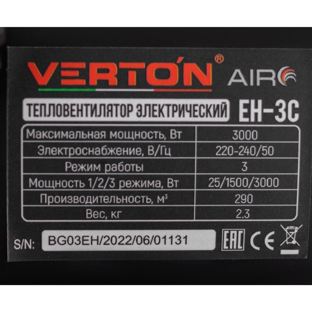 Электрический тепловентилятор VERTON Air EH-3C 01.5985.6762
