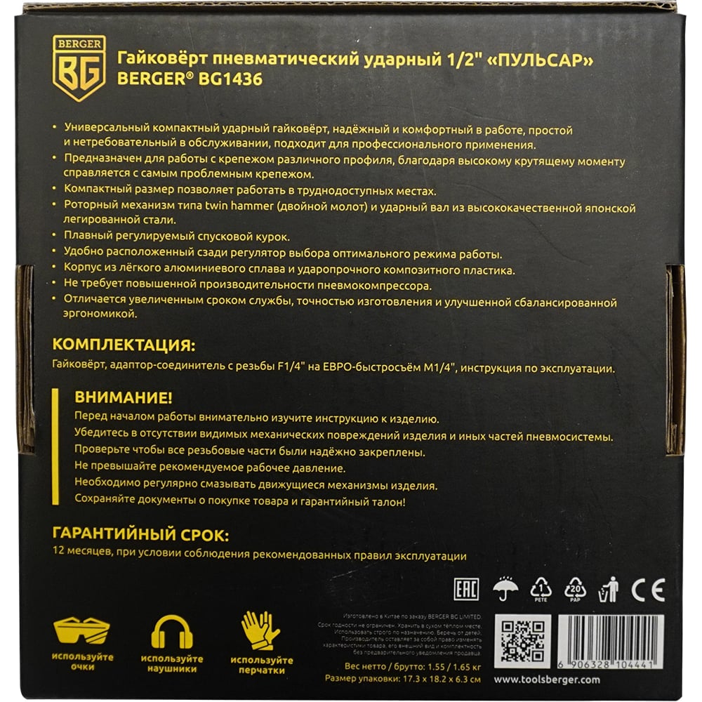 Ударный пневматический гайковерт Berger BG ПУЛЬСАР BG1436