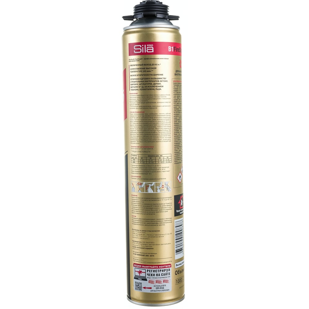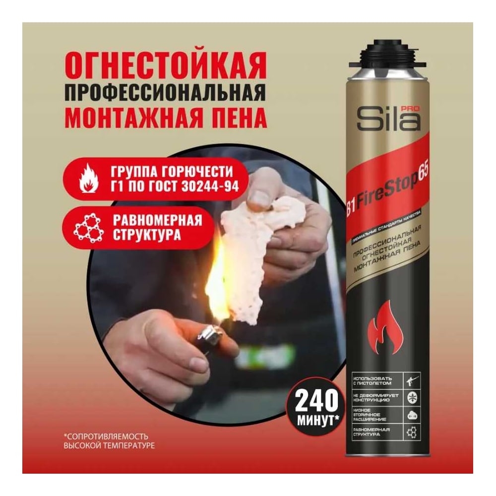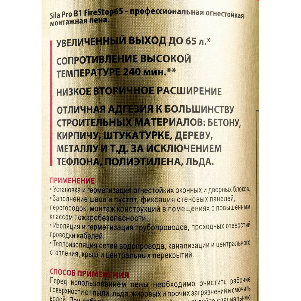 Огнестойкая профессиональная монтажная пена Sila Pro B1 Firestop 65, 850 мл SPFR65