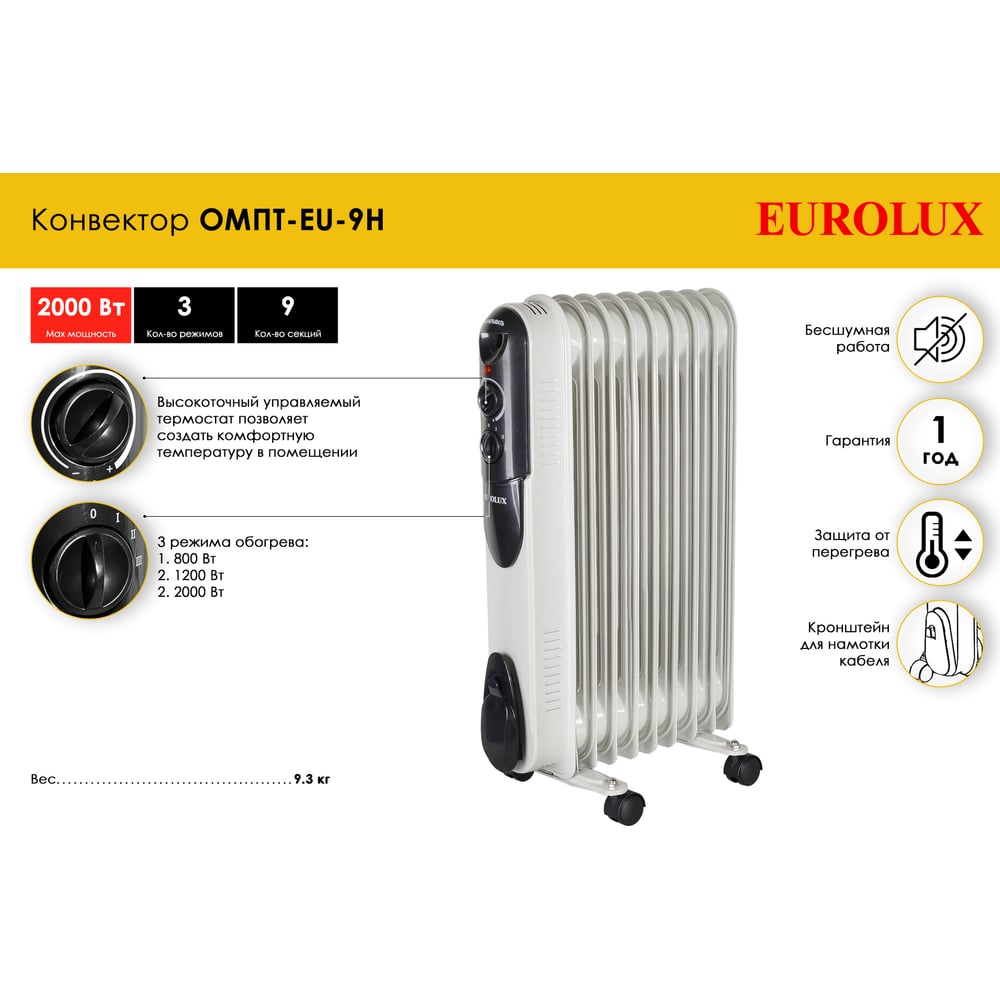 Масляный радиатор Eurolux ОМПТ-EU-9Н 67/3/19