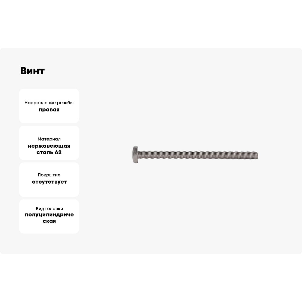 Винт КРЕП-КОМП полуцилиндрическая головка, нержавейка, DIN7985, А2, 6х80, 10 шт. вцн680мф