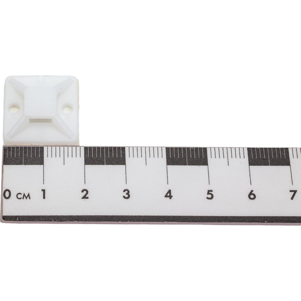 Высота 8 мм Длина 20 мм Материал нейлон 6.6 Ширина 20 мм Цвет белый Фасовка 100 шт Диаметр монтажных отверстий 3 мм Фиксация самоклеящиеся Ширина стяжки 4 мм