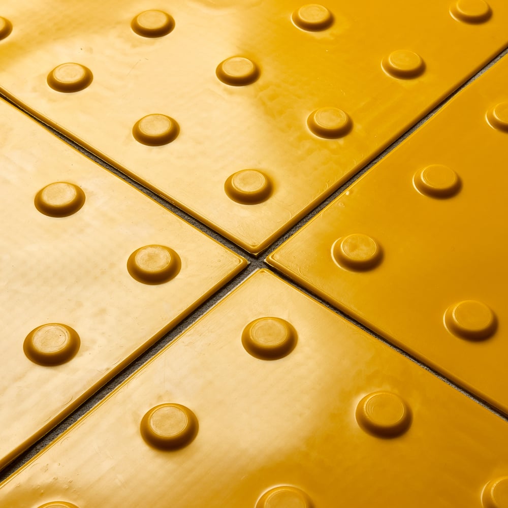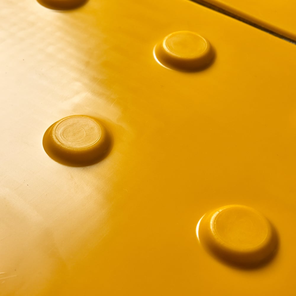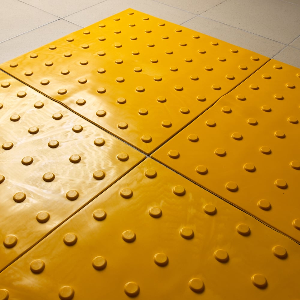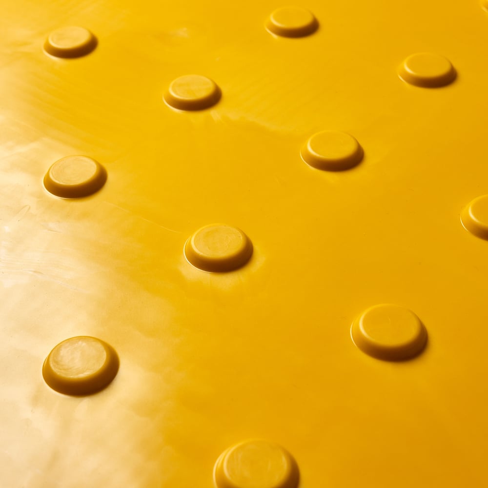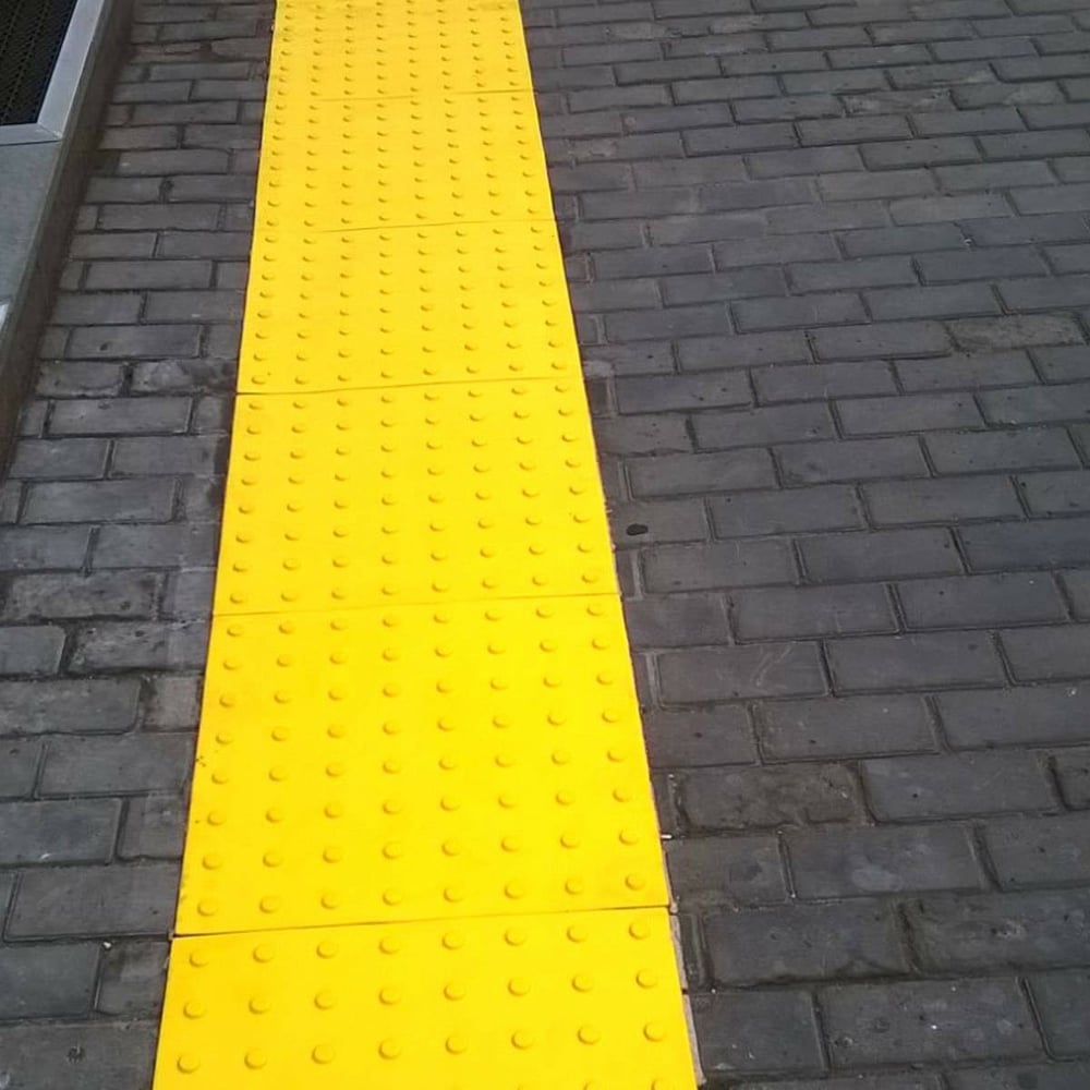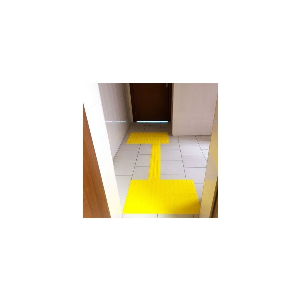 Габариты без упаковки 500х500х5 мм Материал ПВХ Цвет желтый Вес нетто 0.9 кг Количество в упаковке 10 шт Место применения внутри помещения Толщина основания 1 мм Форма тактильных рифов усеченный конус Расположение тактильных рифов линейное Высота тактильного рифа 4 мм