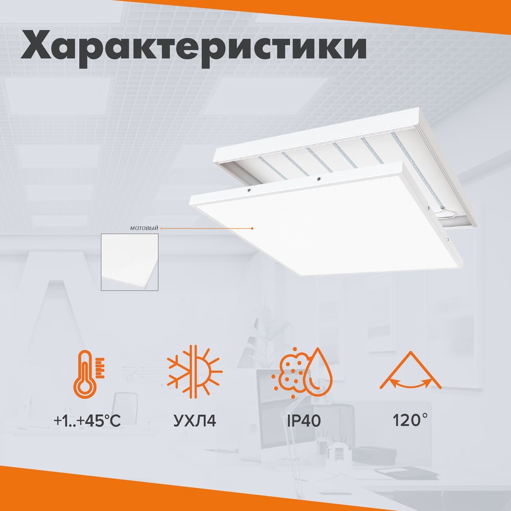 Светодиодная панель Wolta 36Вт, 4000К, дневной свет, IP40, матовый Производство РФ ДВО11-36-001-4К