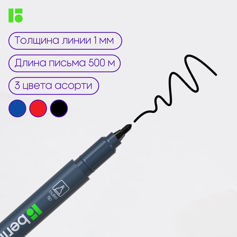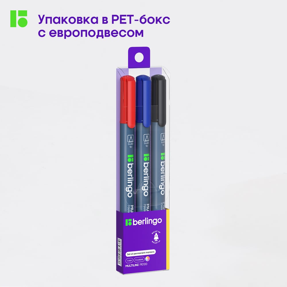 Набор перманентных маркеров Berlingo "Multiline PE100" 03цв., пулевидный, 1,0мм, европодвес, BMc_31409